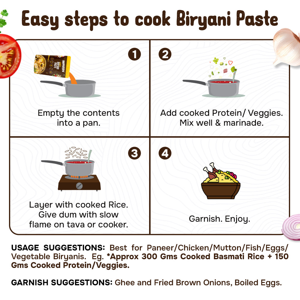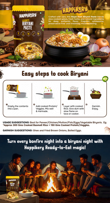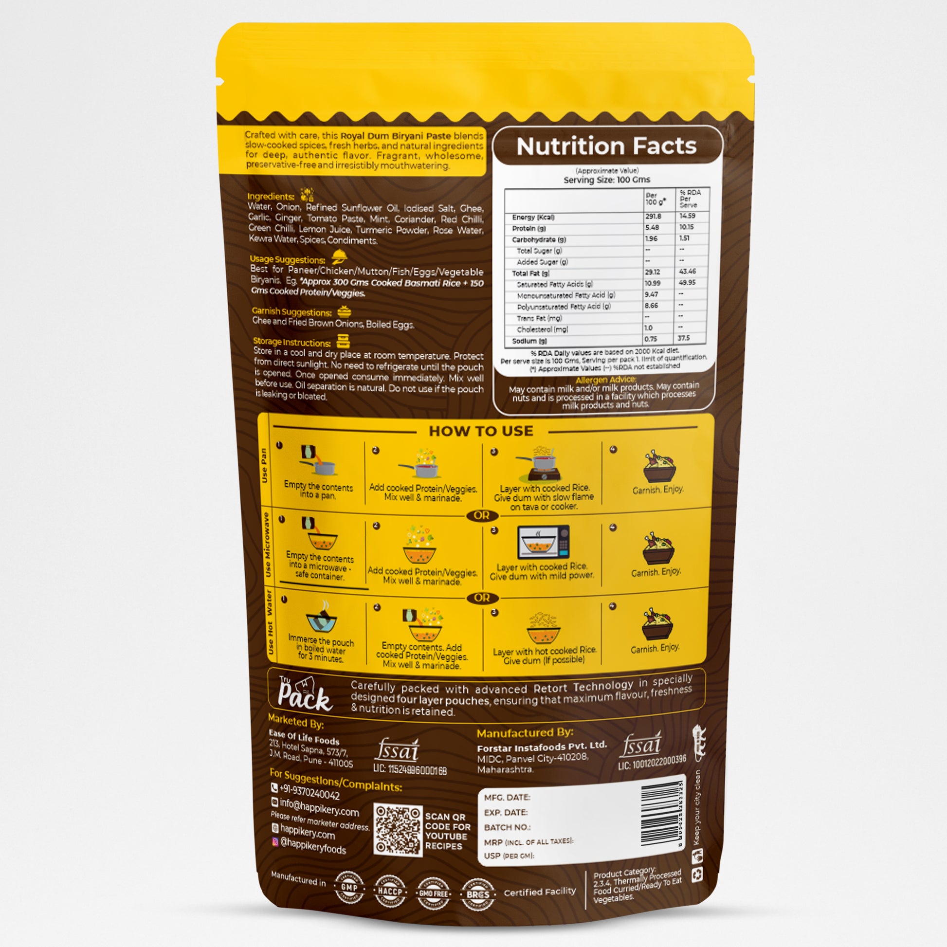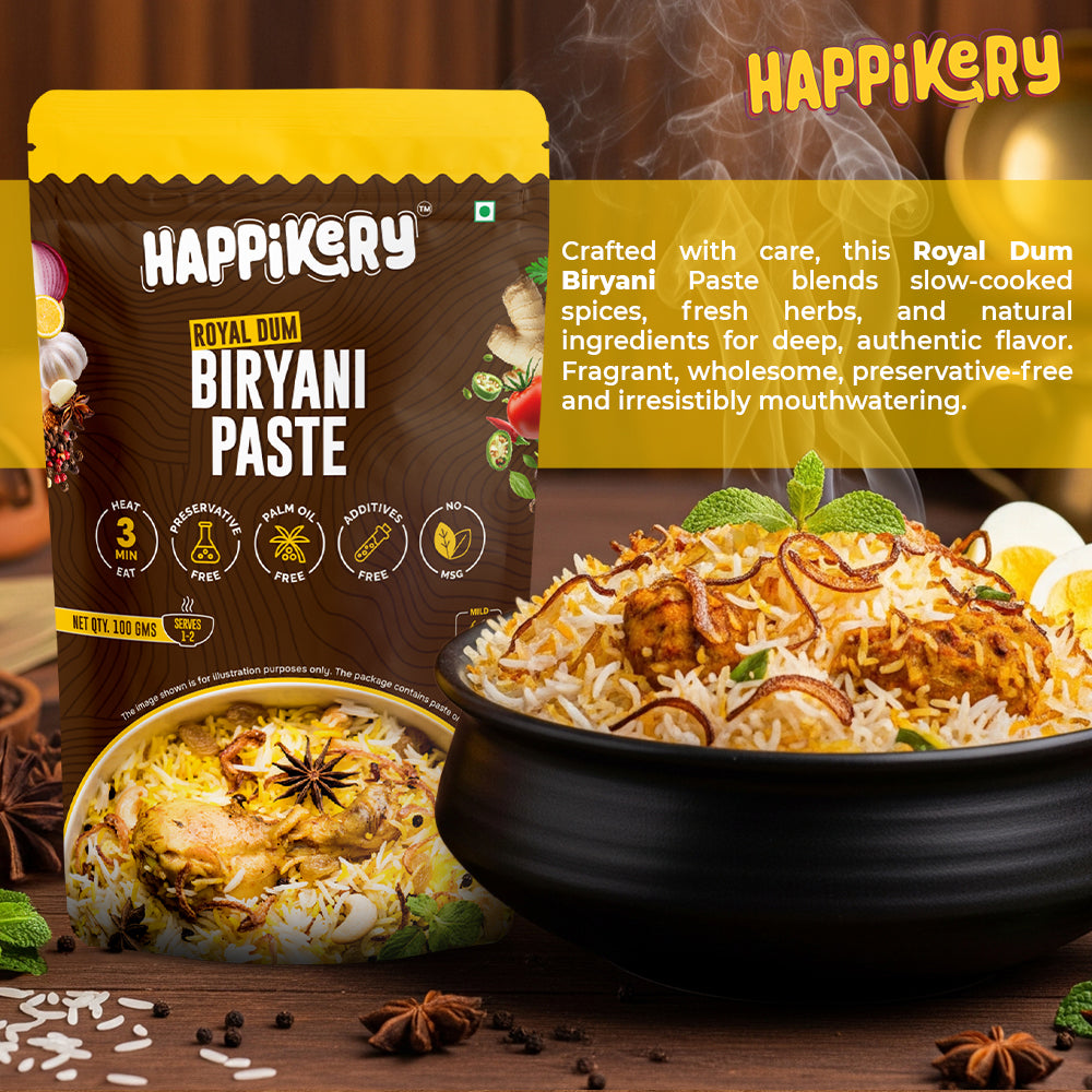 Crafted with care, this Royal Dum Biryani Paste blends slow-cooked spices, fresh herbs and natural ingredients for deep, authentic flavor. Fragrant, wholesome, preservative-free and irresistibly mouthwatering.