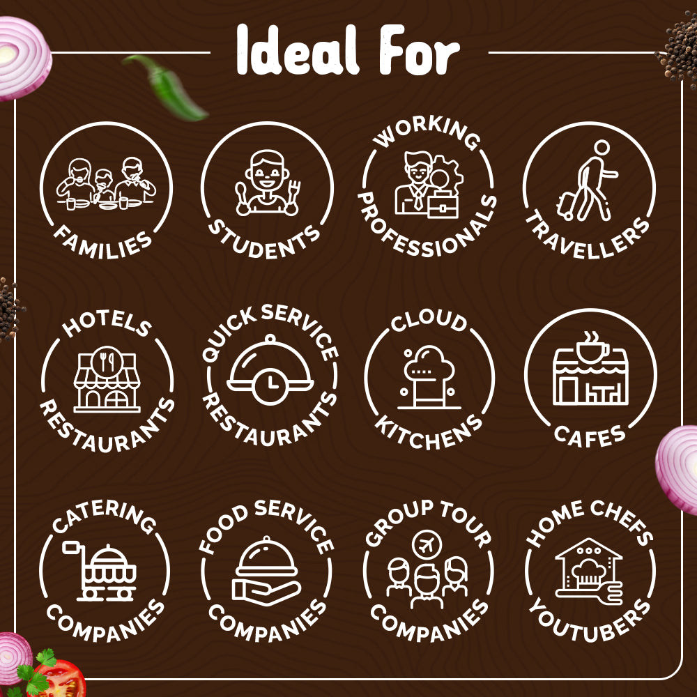 Best for Paneer/Chicken/Mutton/Fish/Eggs/Vegetable Biryanis. Eg. *Approx 300 Gms Cooked Basmati Rice + 150 Gms Cooked Protein/Veggies.